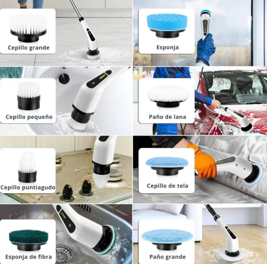 Funciona en baños, cocinas, ventanas, azulejos, grifos, lavamanos, estufas y rincones difíciles. Sus 9 cabezales intercambiables se adaptan a todo tipo de superficies.